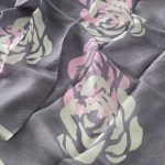 Dark Grey Kelagayi scarf with White and Pink Roses patterns 120cm x 120cm